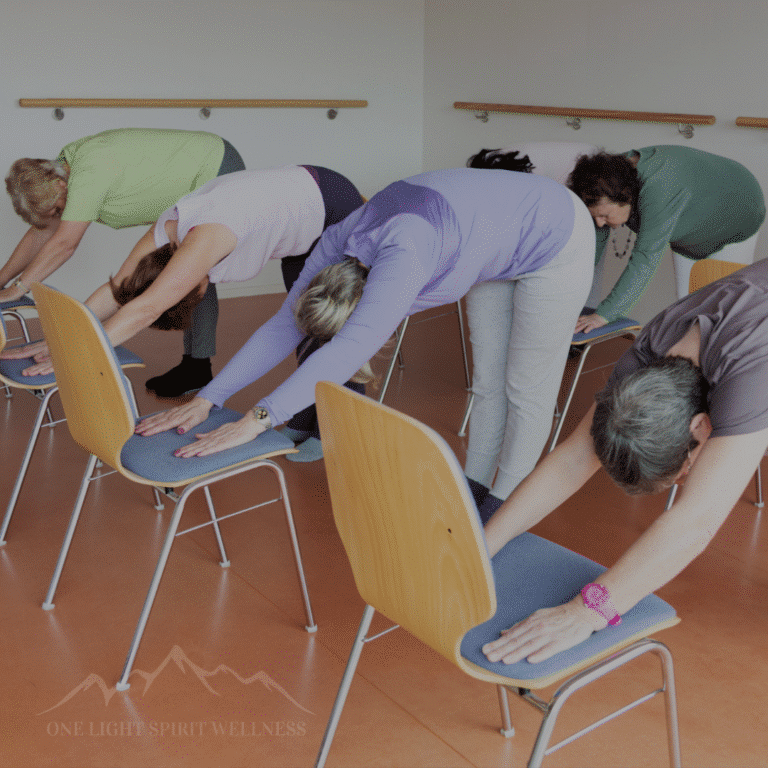 Senior Chair Yoga offers a supportive and accessible way to experience the benefits of yoga, no need to get down on the floor.